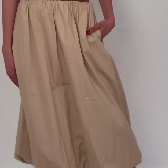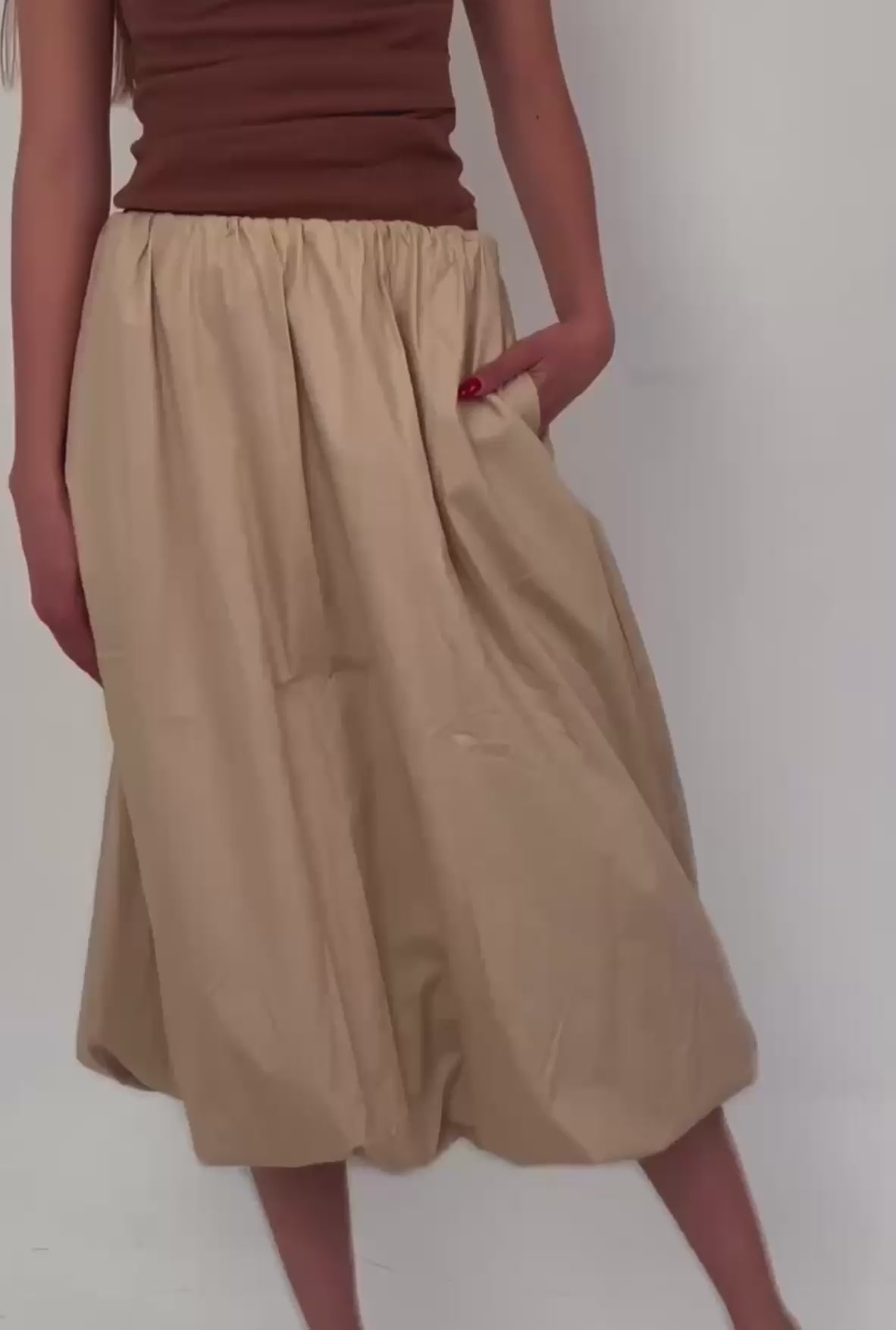 falda larga estilo globo material de algodón su diseño hace que la falda tenga una caída muy sofisticada y elegante