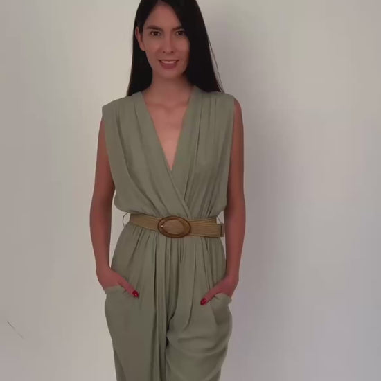 Pieza completa material en algodón es una pieza fresca y cómoda su elástico en la cintura y sus pliegues en la cadera dan una forma ceñida al cuerpo que la hace una pieza con estilo